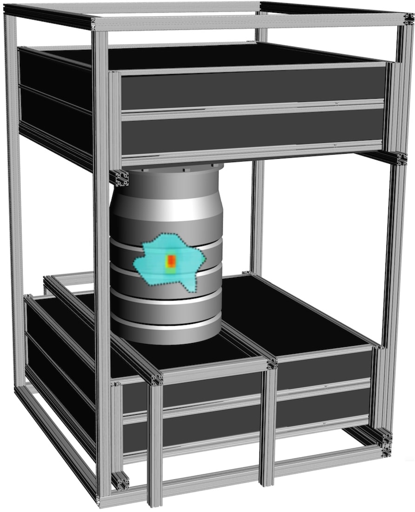 Using our novel 3D imaging system we can passively inspect the contents of shielded structures to identify the different materials contained within.